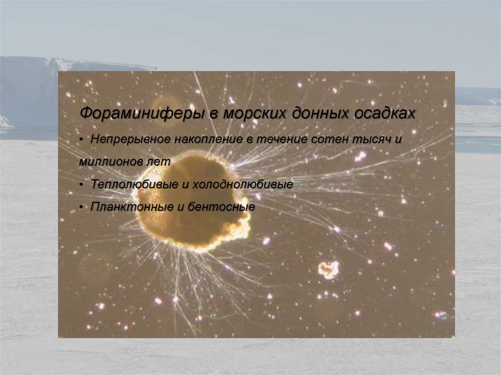 Фораминиферы в морских донных осадках• Непрерывное накопление в течение сотен тысяч и