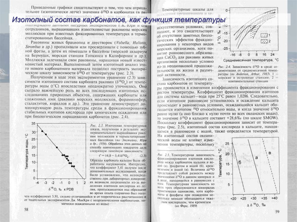 Изотопный состав карбонатов, как функция температуры7.