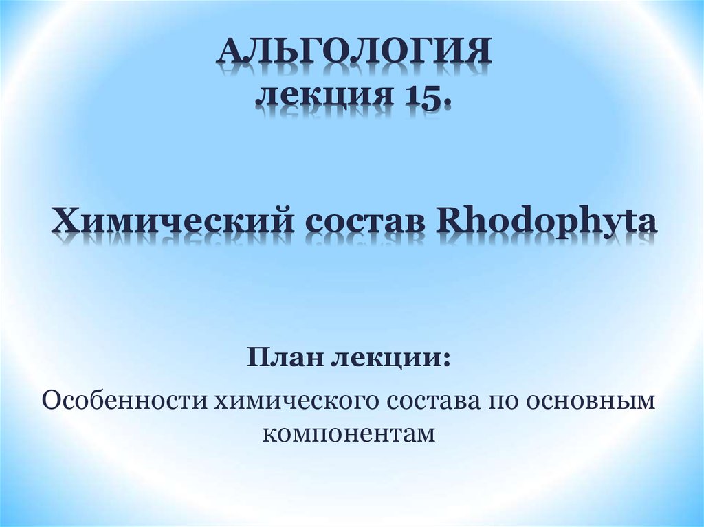 1. АЛЬГОЛОГИЯ лекция 15. Химический состав Rhodophyta