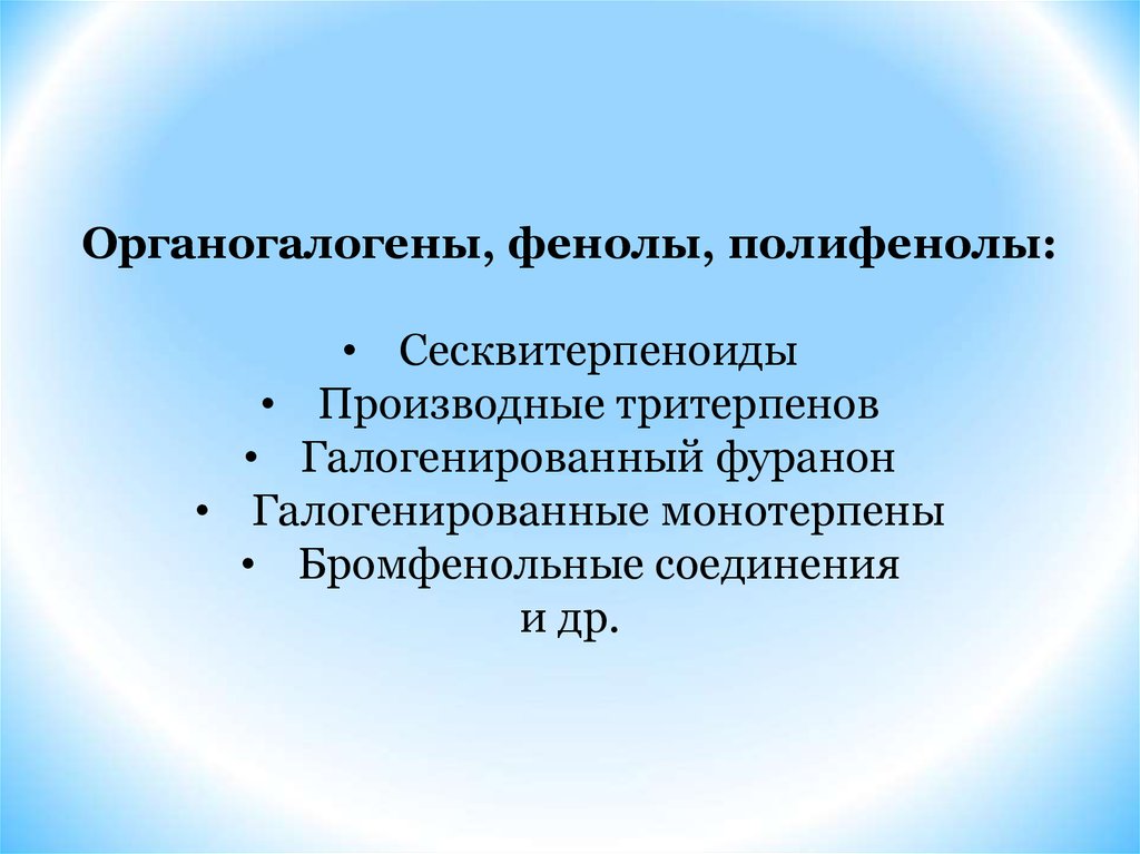 Органогалогены, фенолы, полифенолы:• Сесквитерпеноиды