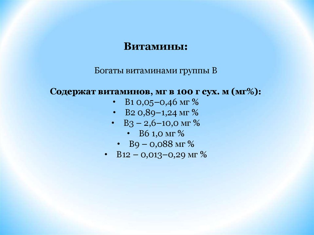 Витамины:Богаты витаминами группы В