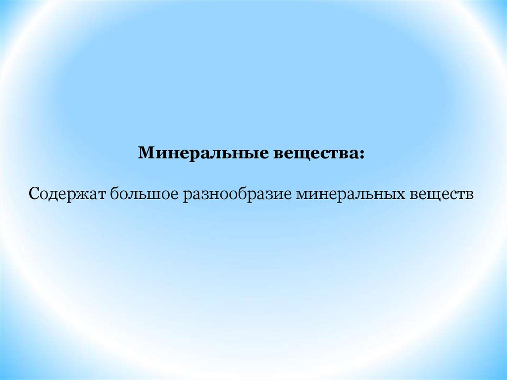 Минеральные вещества:Содержат большое разнообразие минеральных веществ