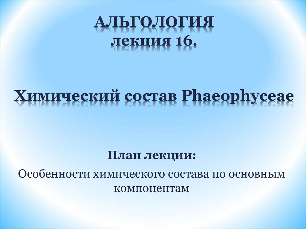 1. АЛЬГОЛОГИЯ лекция 16. Химический состав Phaeophyceae