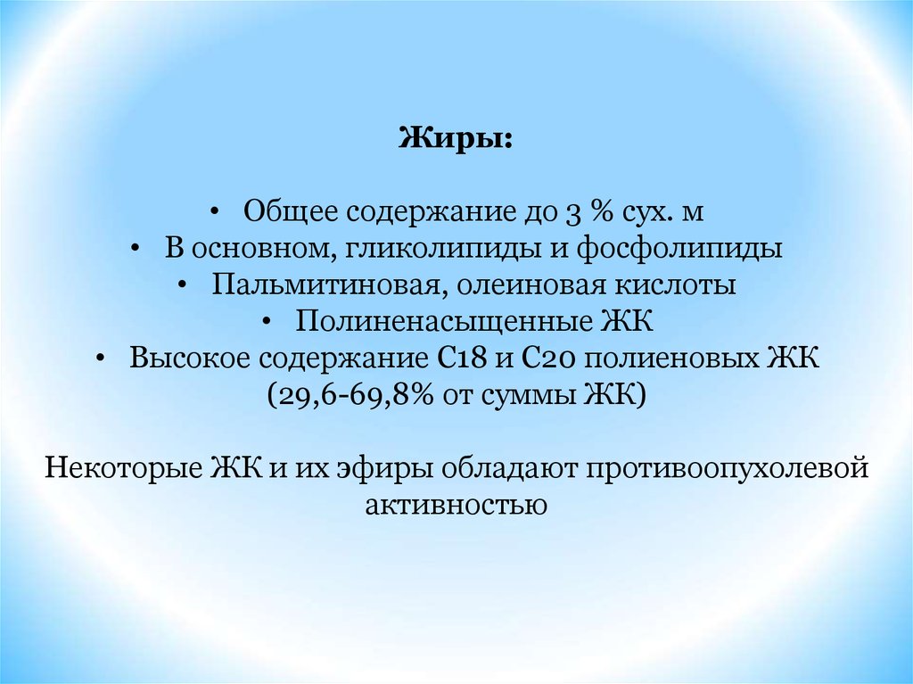 Жиры:• Общее содержание до 3 % сух. м