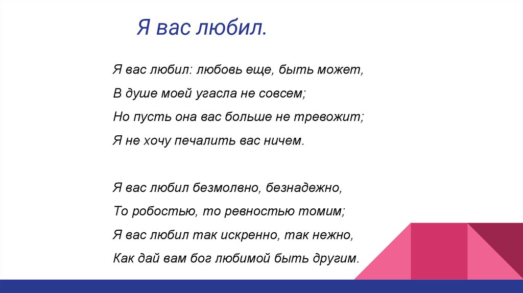 Я вас любил.Я вас любил: любовь еще, быть может,