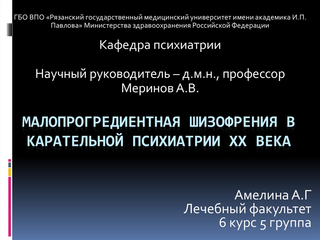 1. Малопрогредиентная шизофрения в карательной психиатрии ХХ века