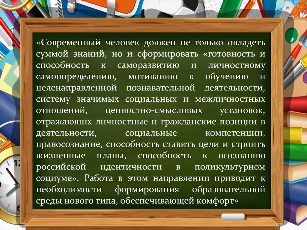 «Современный человек должен не только овладетьсуммой знаний, но и сформировать «готовность и
