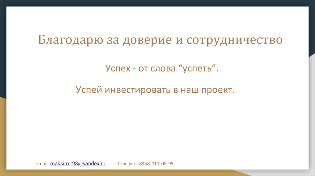 Благодарю за доверие и сотрудничествоУспех - от слова “успеть”.