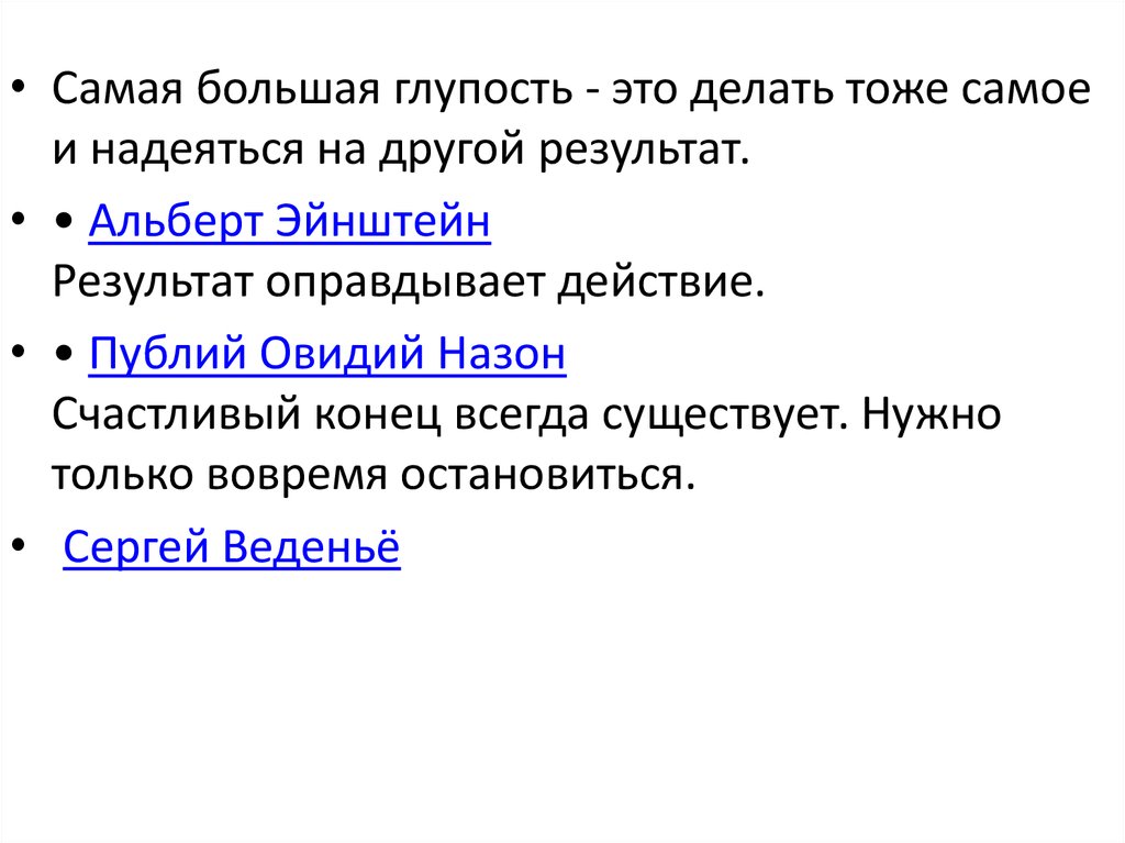 • Самая большая глупость - это делать тоже самоеи надеяться на другой результат.