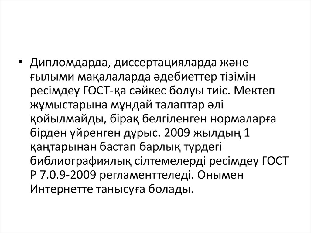• Дипломдарда, диссертацияларда жәнеғылыми мақалаларда әдебиеттер тізімін