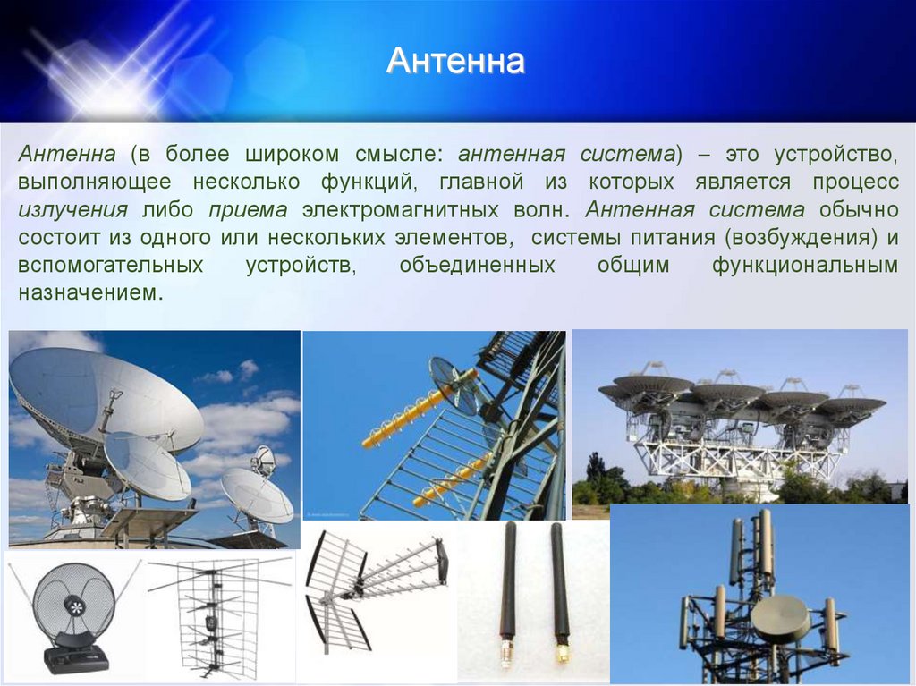 излучения либо приема электромагнитных волн. Антенная система обычно