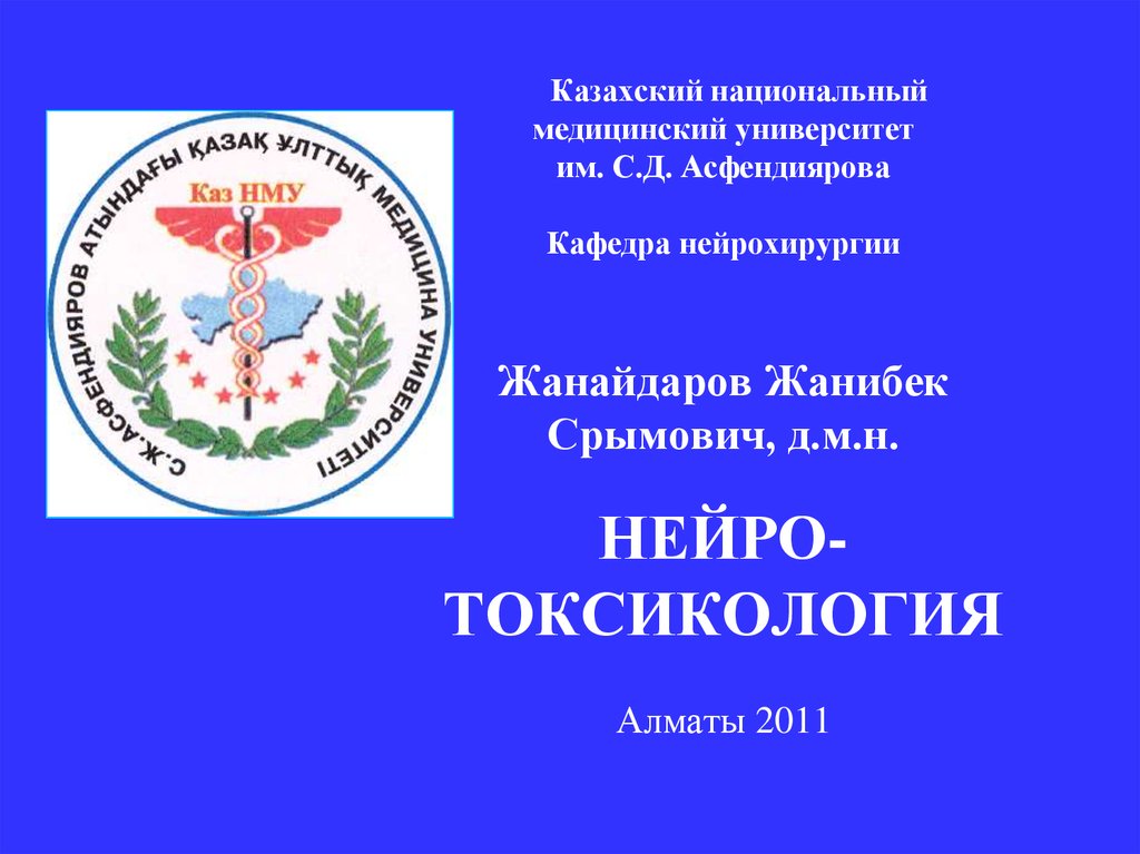 1. Казахский национальный медицинский университет им. С.Д. Асфендиярова Кафедра нейрохирургии Жанайдаров Жанибек Срымович, д.м.н.
