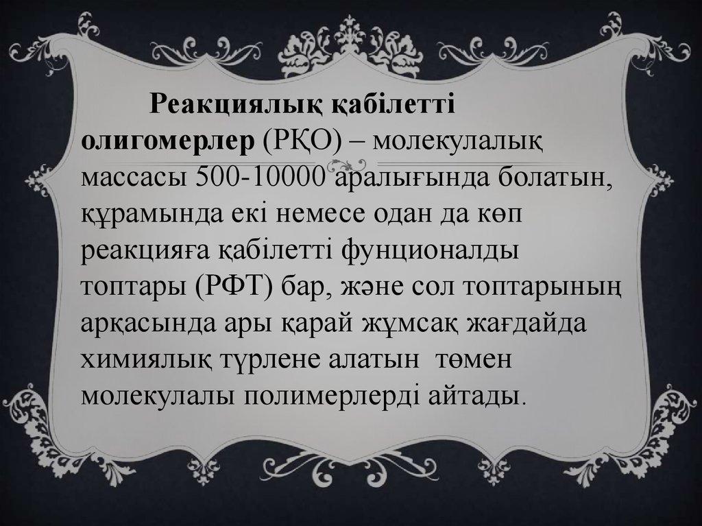 Реакциялық қабілеттіолигомерлер (РҚО) – молекулалық