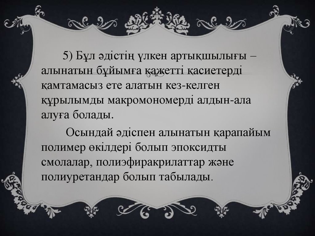 1. Реакцияға қабілетті олигомерлердің мономерлерге қарағанда артықшылығы.