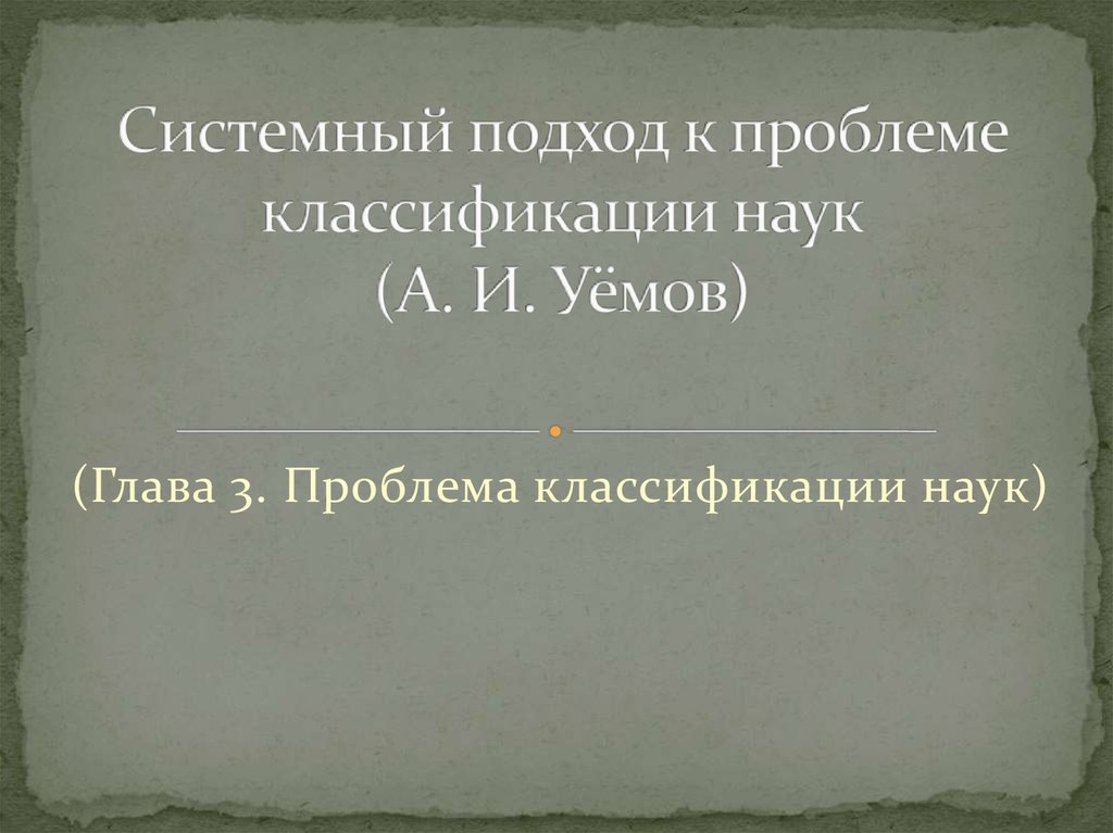 1. Системный подход к проблеме классификации наук (А. И. Уёмов)