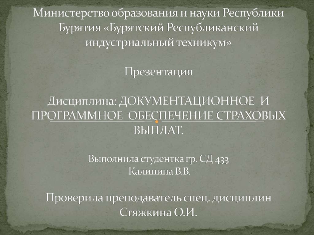 1. Министерство образования и науки Республики Бурятия «Бурятский Республиканский индустриальный техникум» Презентация Дисциплина: