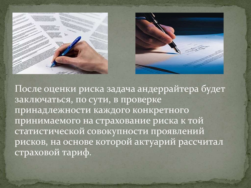 После оценки риска задача андеррайтера будетзаключаться, по сути, в проверке