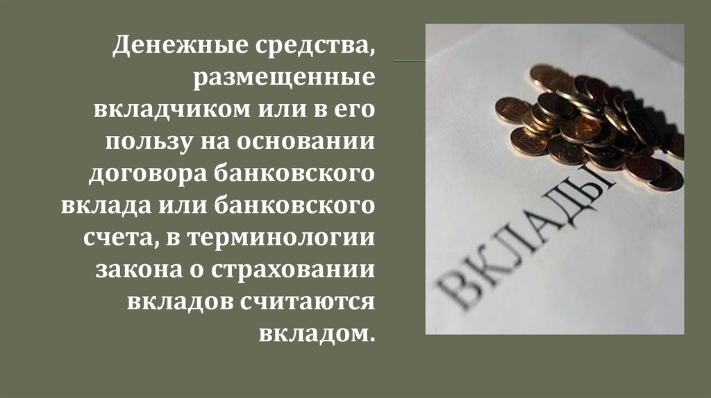 Презентация на тему: « Распространяется ли страхование на денежные