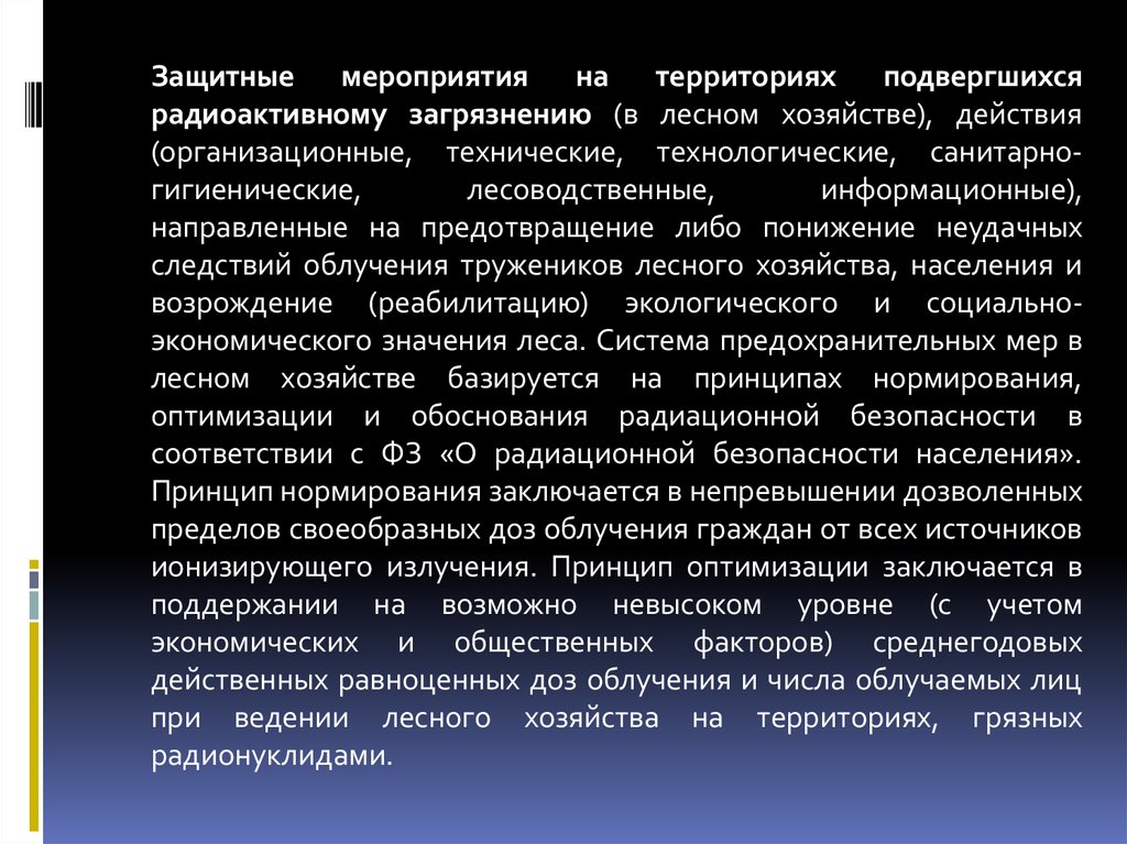 Защитные мероприятия на территориях подвергшихсярадиоактивному загрязнению (в лесном хозяйстве), действия