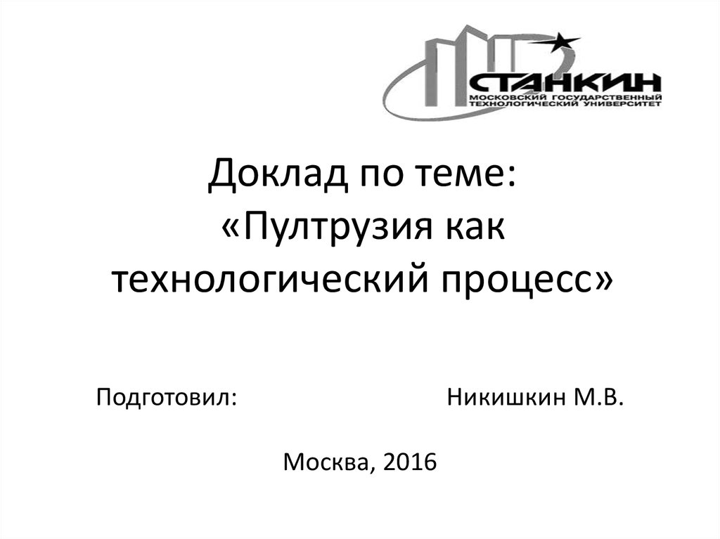 1. Доклад по теме: «Пултрузия как технологический процесс»