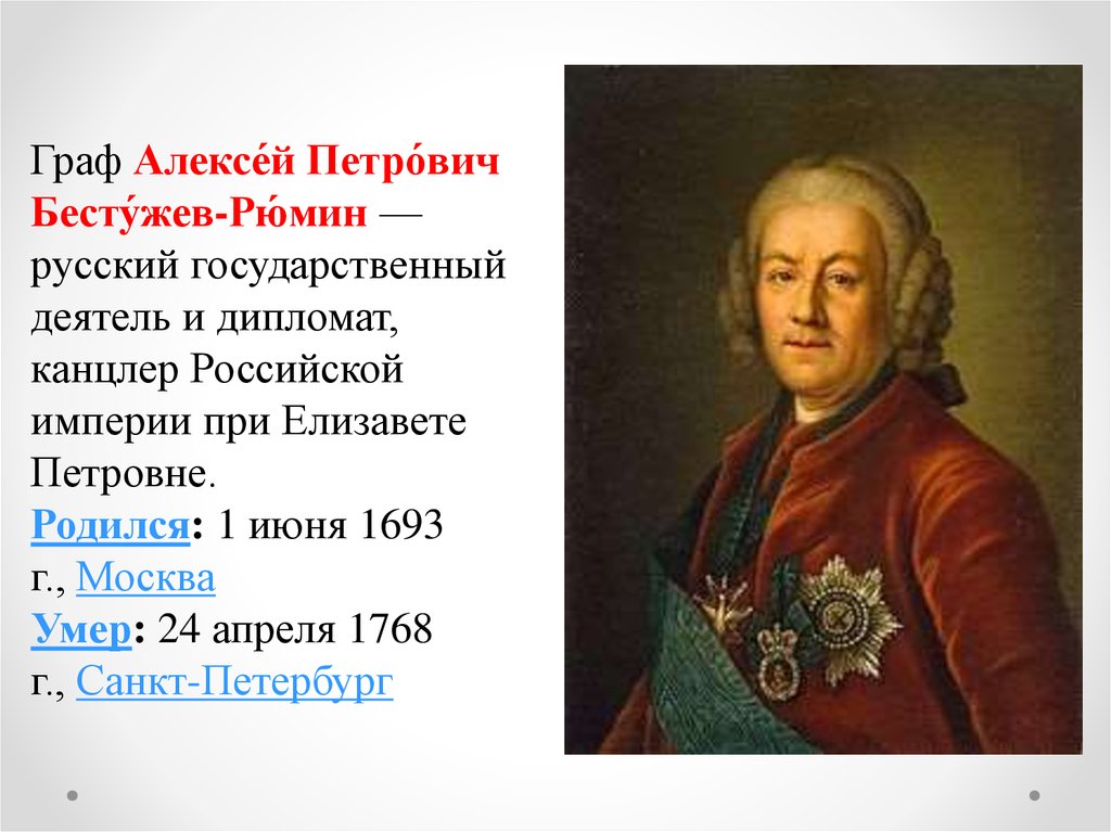 Граф Алексе́й Петро́вичБесту́жев-Рю́мин —
