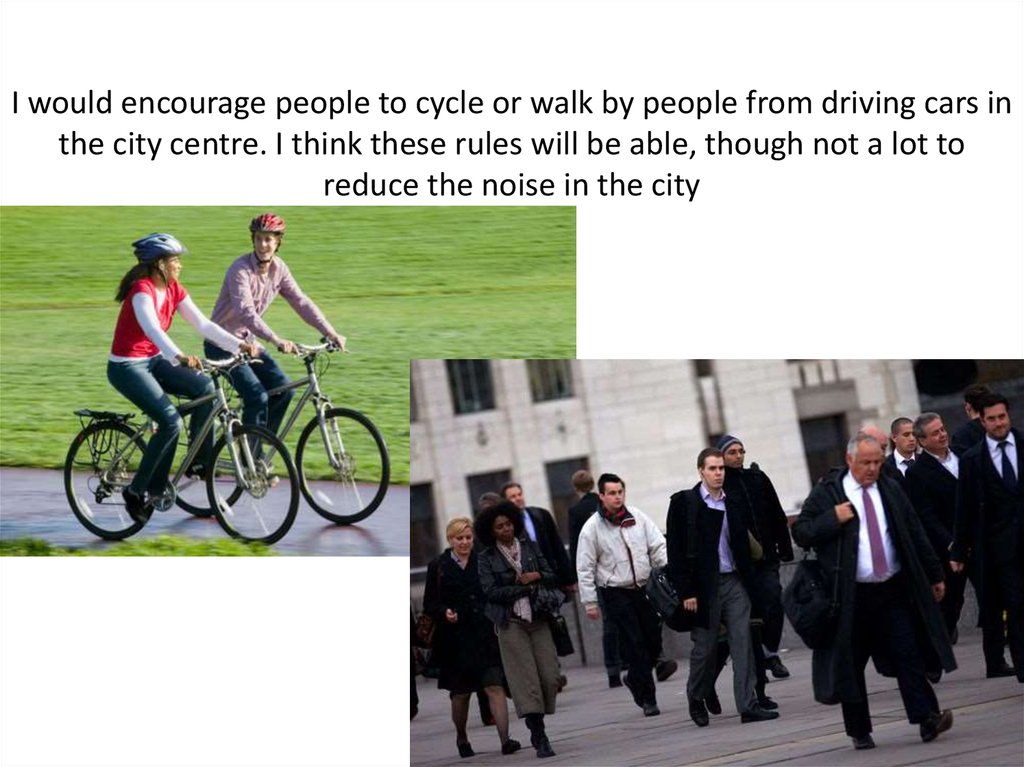 I would encourage people to cycle or walk by people from driving cars inthe city centre. I think these rules will be able, though not a lot to