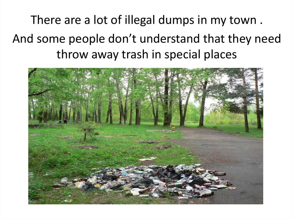 There are a lot of illegal dumps in my town .And some people don’t understand that they need