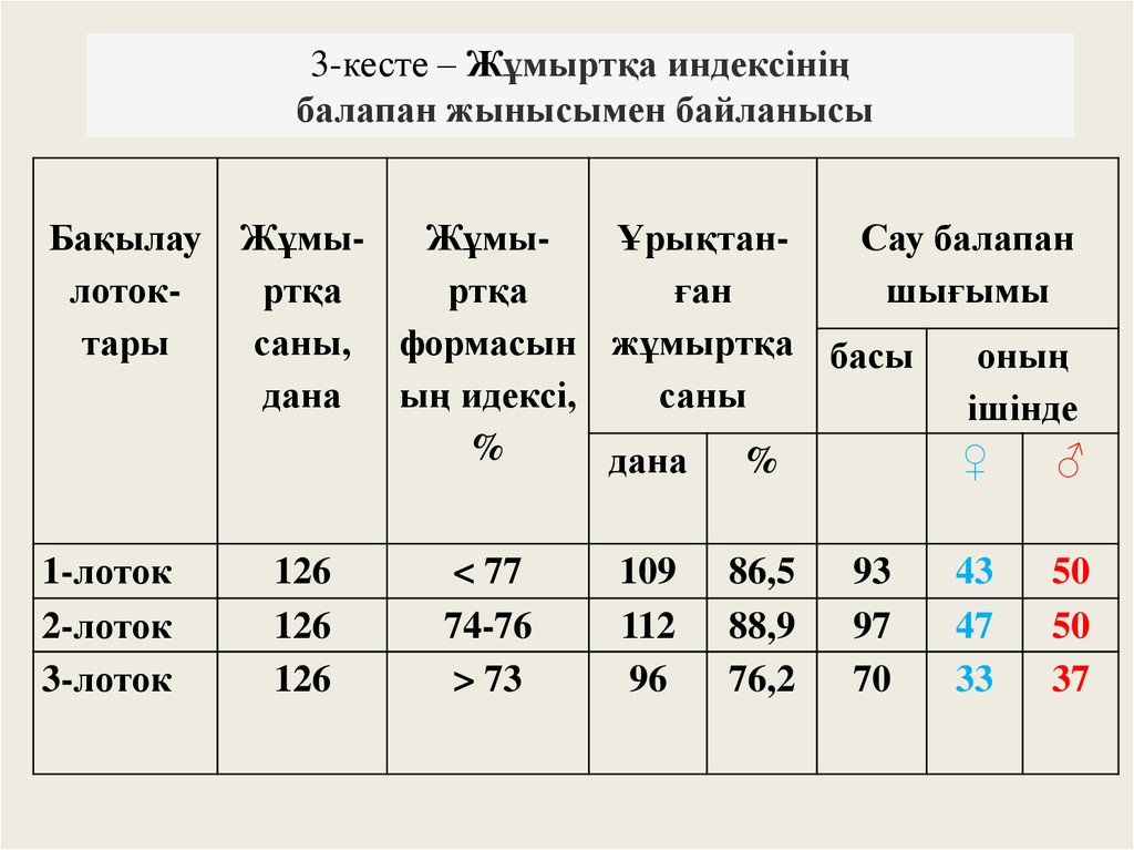 3-кесте – Жұмыртқа индексініңбалапан жынысымен байланысы