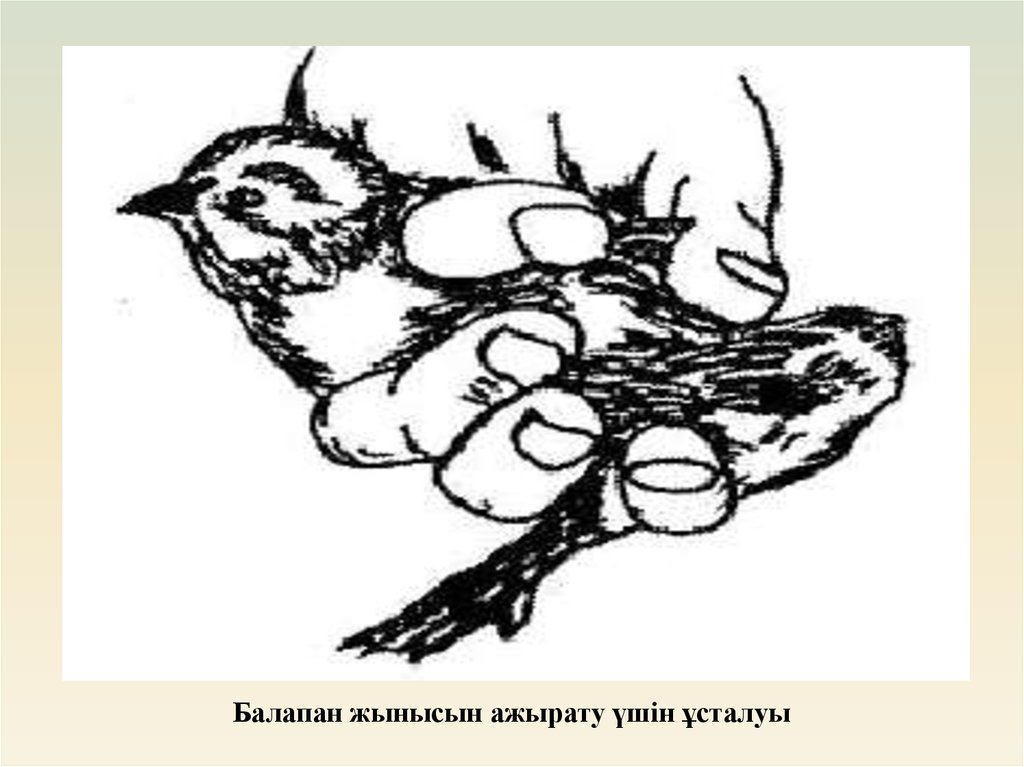 Ол үшін балапанды сол қолға алып, басынтөмен қаратып, басын шынашақпен тіреп, сұқ