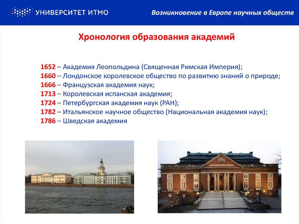 1660 – Лондонское королевское общество по развитию знаний о природе;
