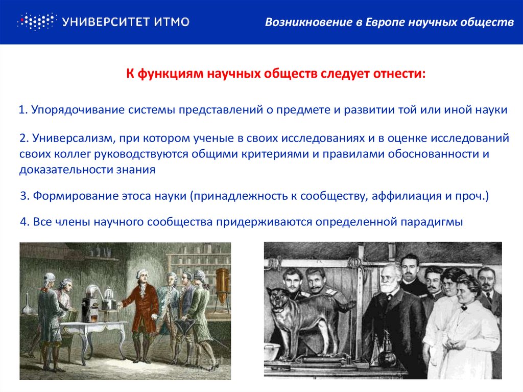 Возникновение в Европе научных обществК функциям научных обществ следует отнести: