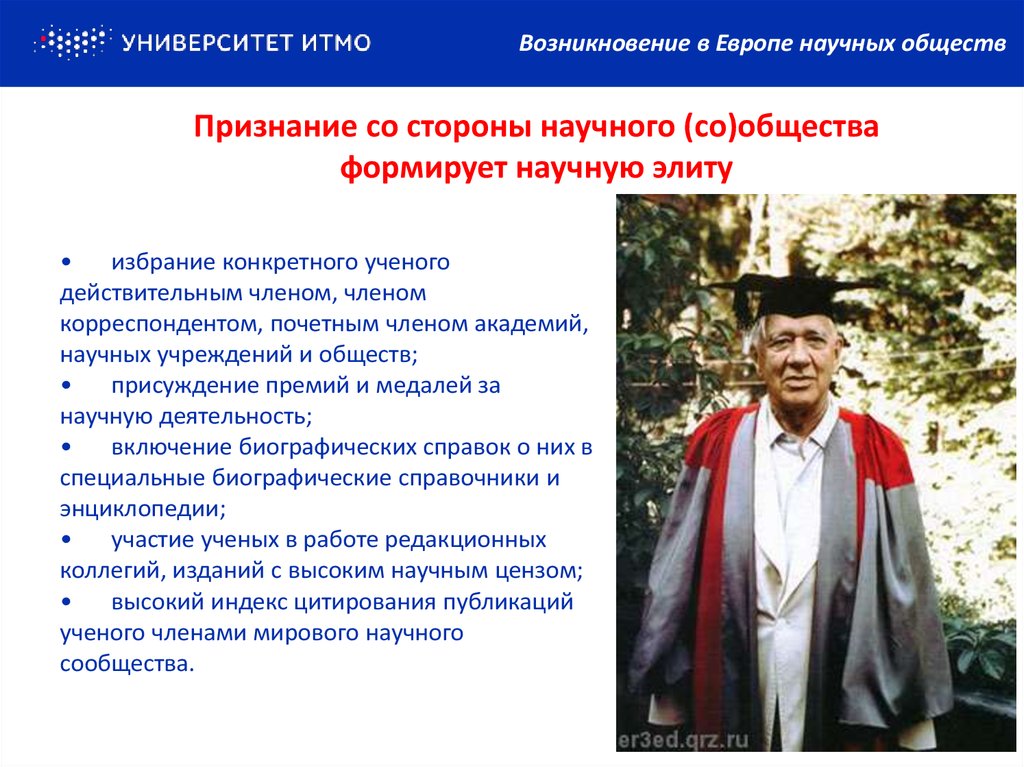 Возникновение в Европе научных обществПризнание со стороны научного (со)общества