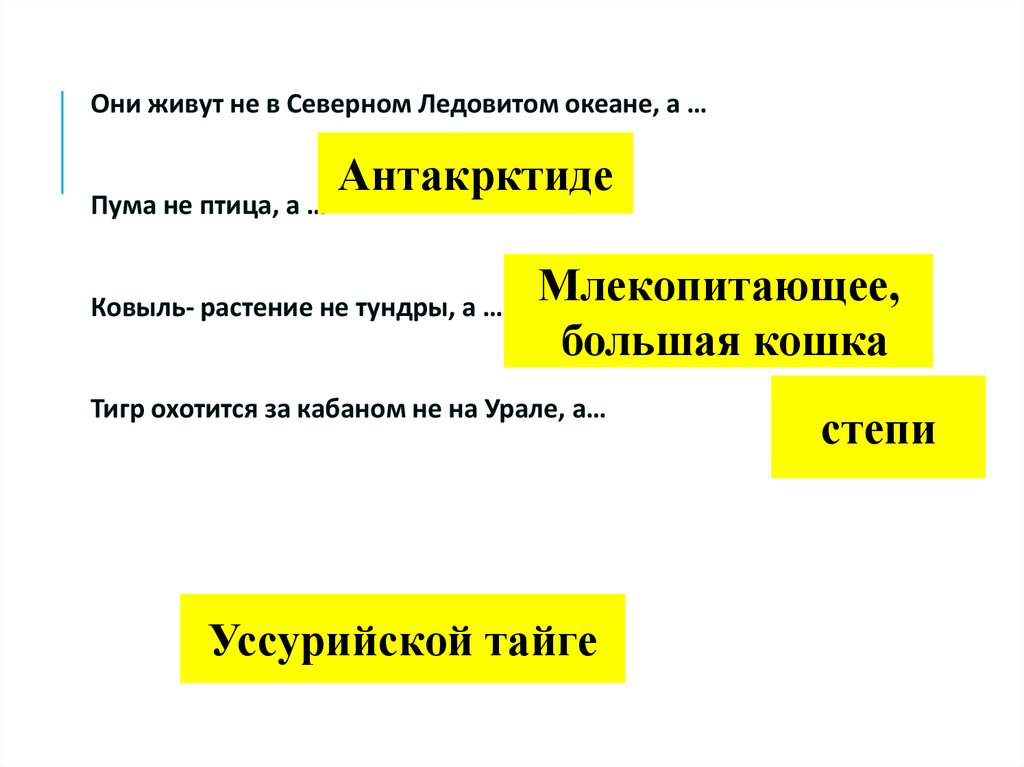 Они живут не в Северном Ледовитом океане, а …Пума не птица, а …
