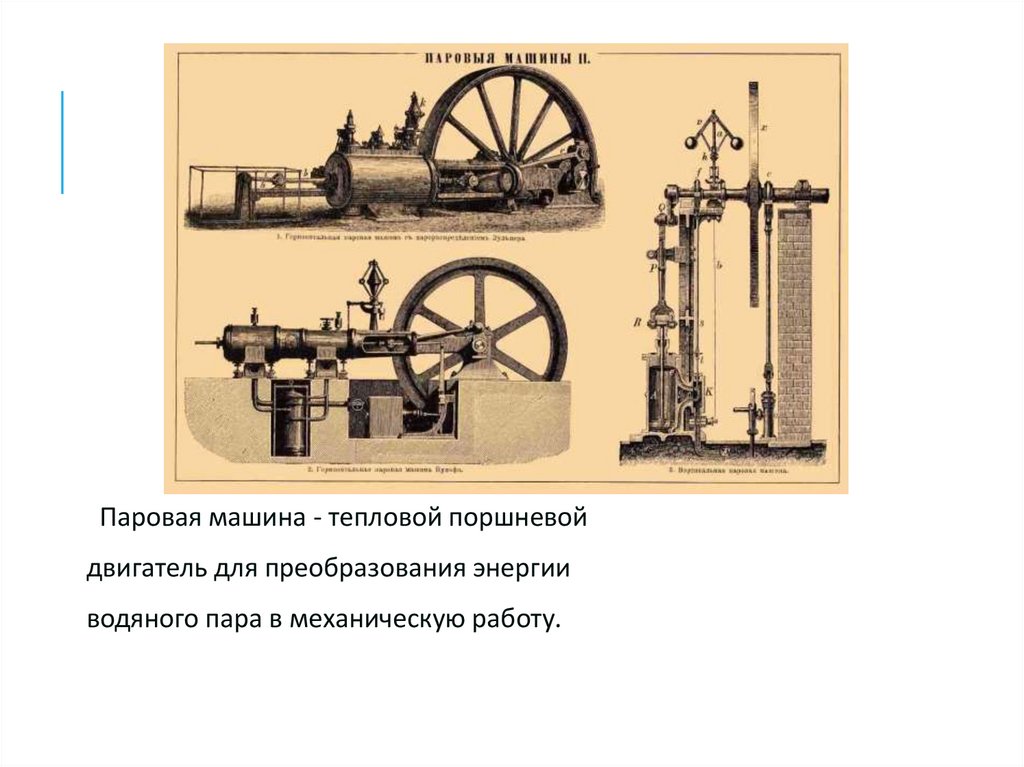 Паровая машина - тепловой поршневойдвигатель для преобразования энергии