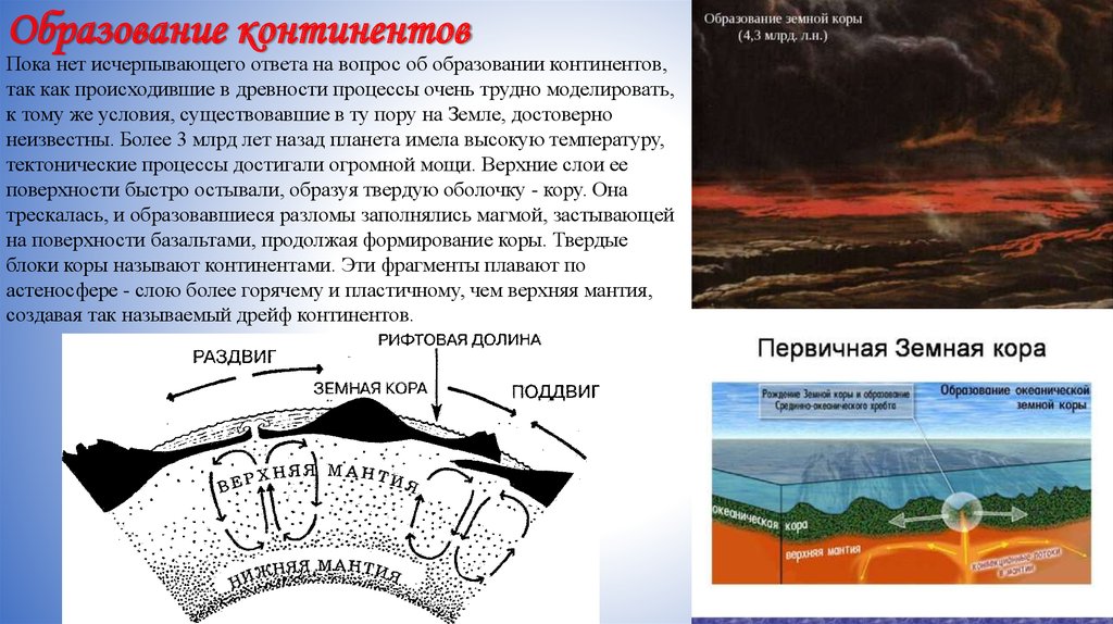 Образование континентовПока нет исчерпывающего ответа на вопрос об образовании континентов,