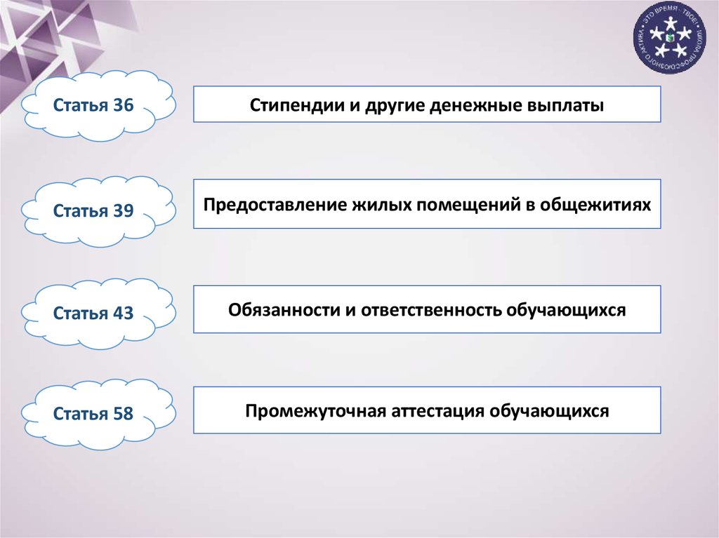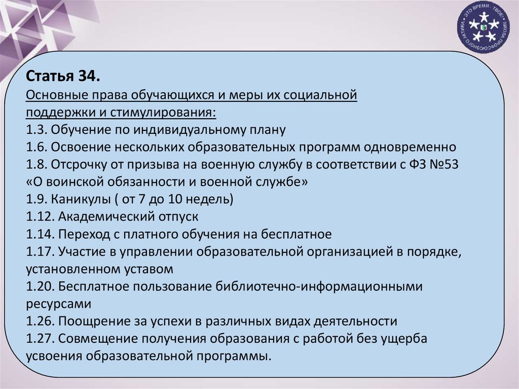 Статья 34.Основные права обучающихся и меры их социальной