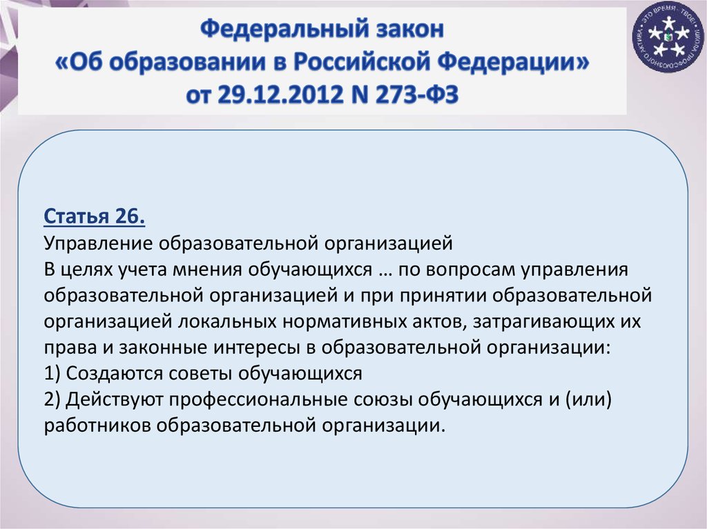 В целях учета мнения обучающихся … по вопросам управления