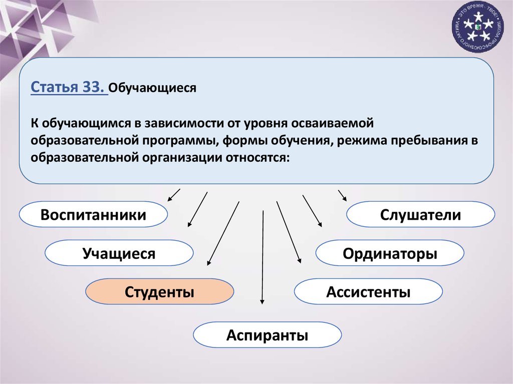 Статья 33. ОбучающиесяК обучающимся в зависимости от уровня осваиваемой