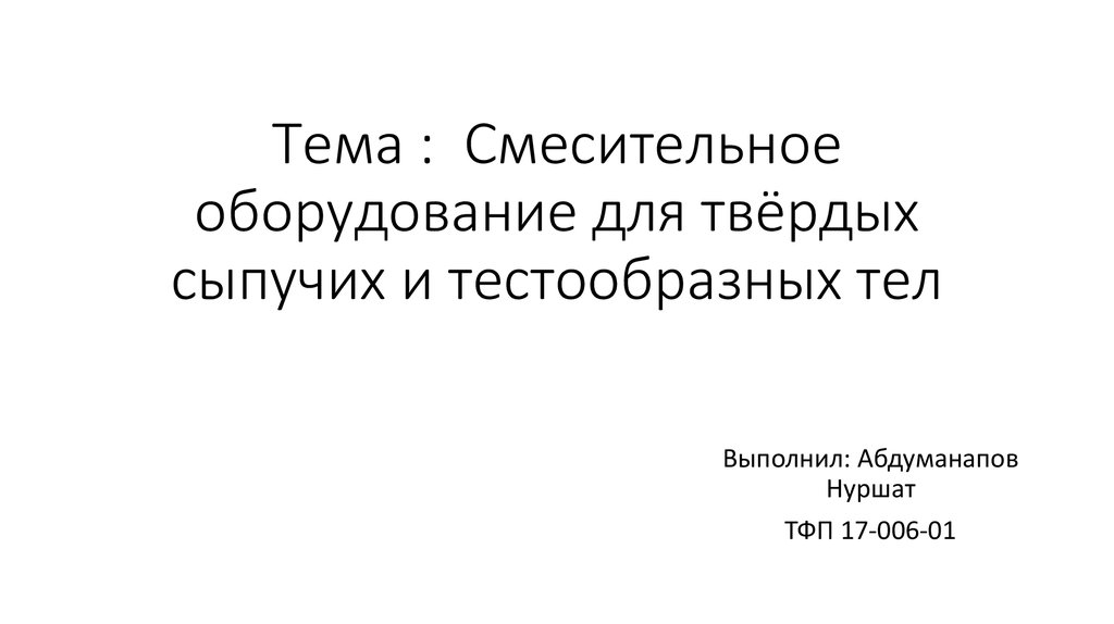 1. Тема : Смесительное оборудование для твёрдых сыпучих и тестообразных тел
