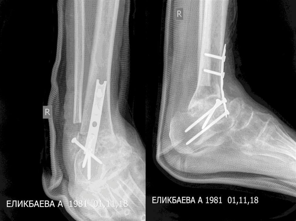 Операция: оң тобық буынының артродезі.