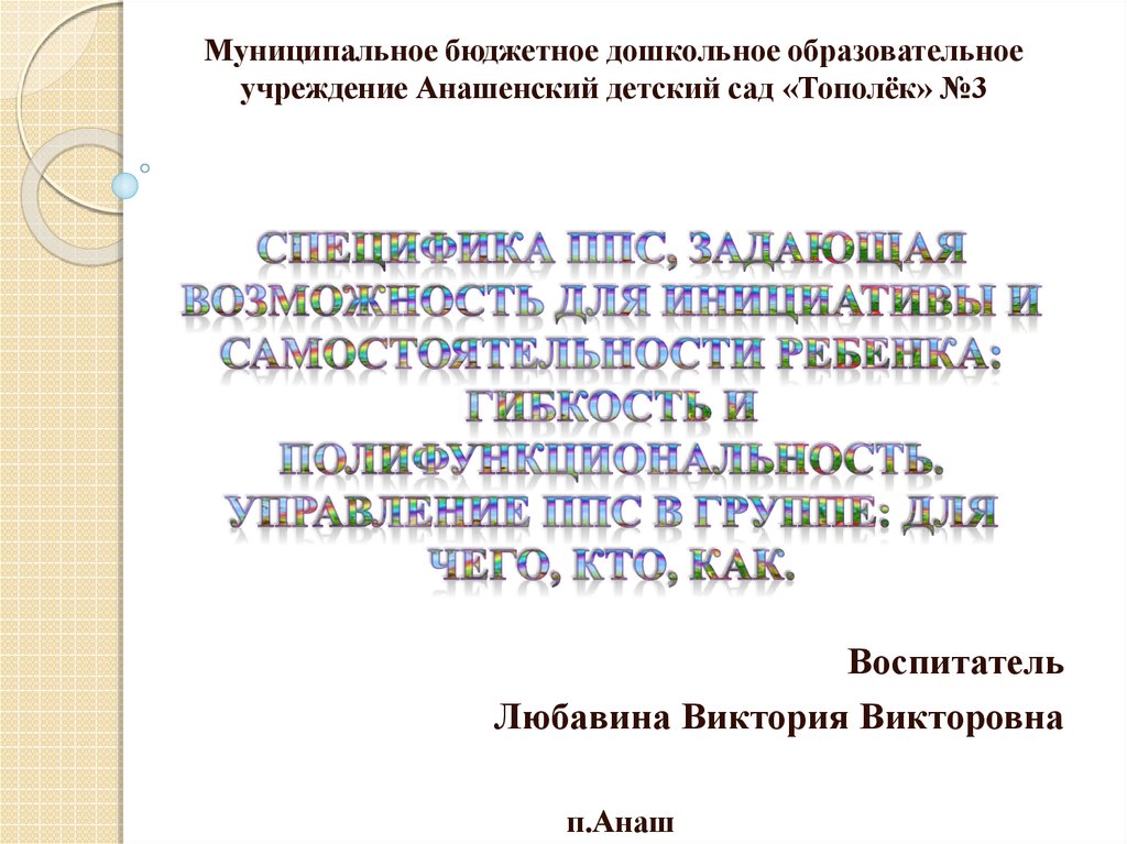 Муниципальное бюджетное дошкольное образовательноеучреждение Анашенский детский сад «Тополёк» №3