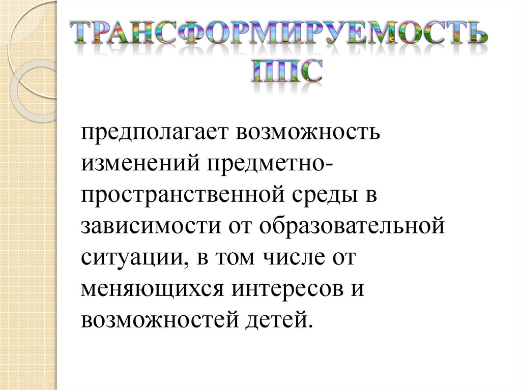 предполагает возможностьизменений предметнопространственной среды в