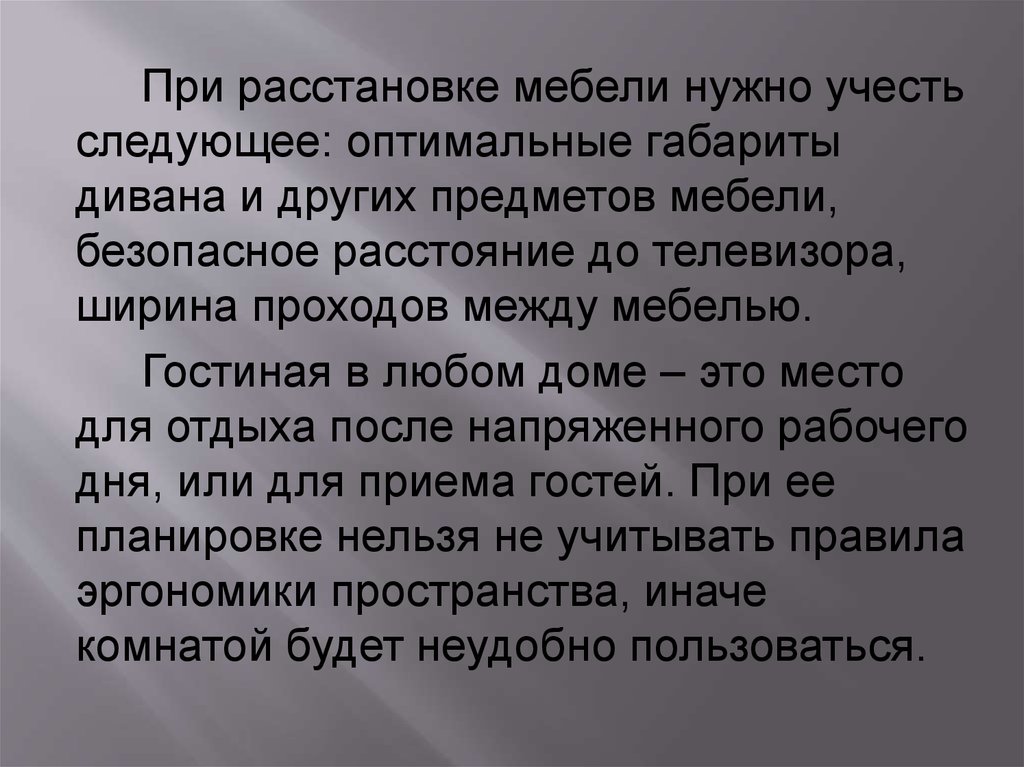 При расстановке мебели нужно учестьследующее: оптимальные габариты