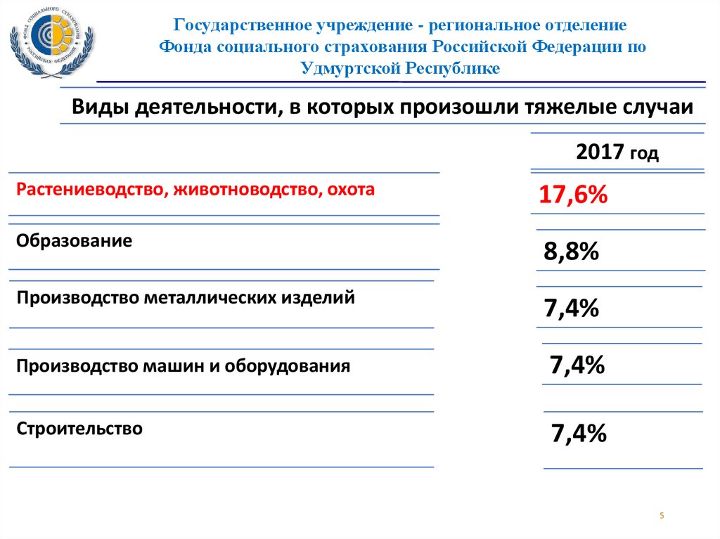 Виды деятельности, в которых произошли тяжелые случаи