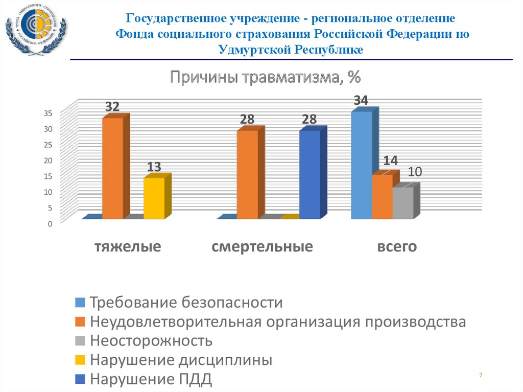 Причины травматизма, %