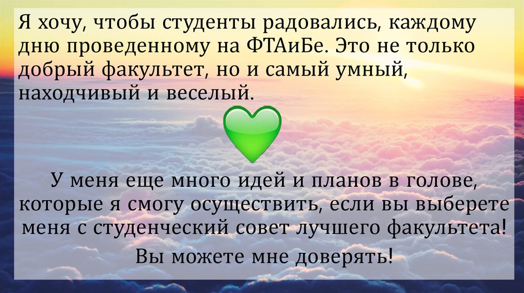 Я хочу, чтобы студенты радовались, каждомудню проведенному на ФТАиБе. Это не только