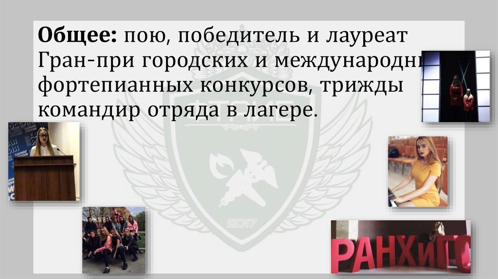 Общее: пою, победитель и лауреатГран-при городских и международных