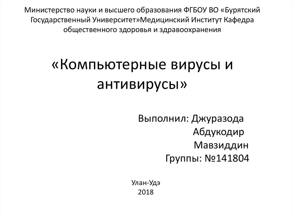 общественного здоровья и здравоохранения«Компьютерные вирусы и