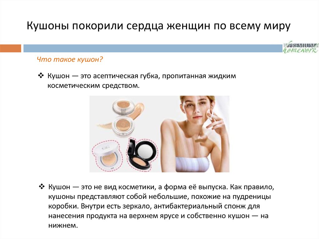 Кушон — это не вид косметики, а форма её выпуска. Как правило,