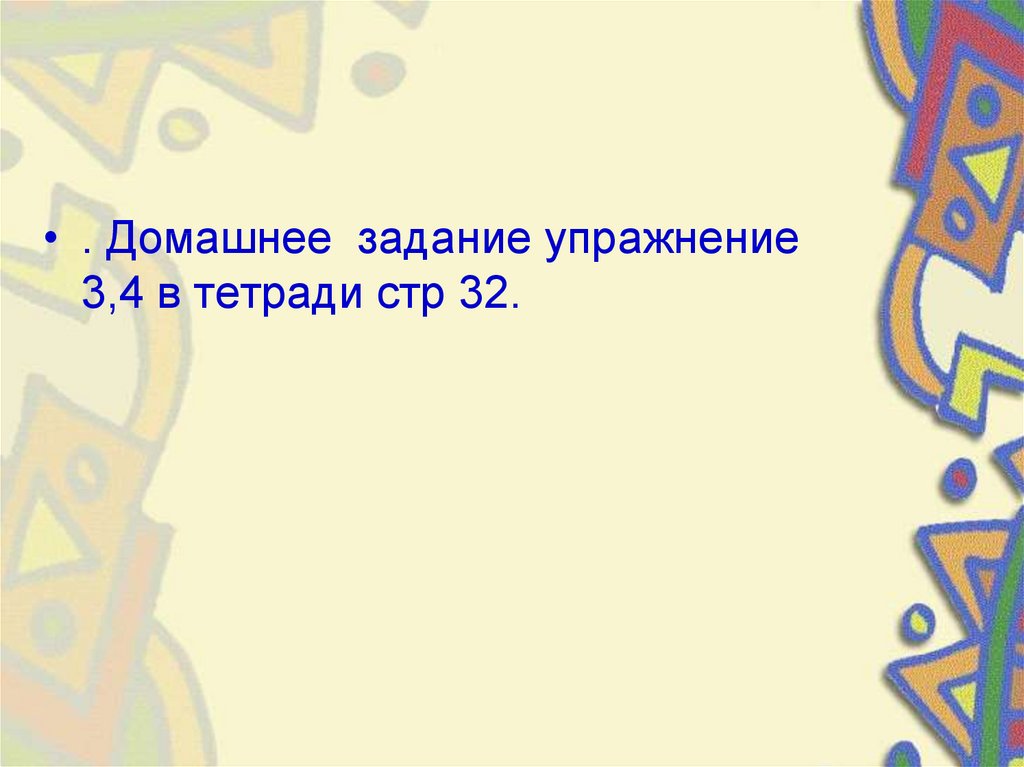 • . Домашнее задание упражнение3,4 в тетради стр 32.